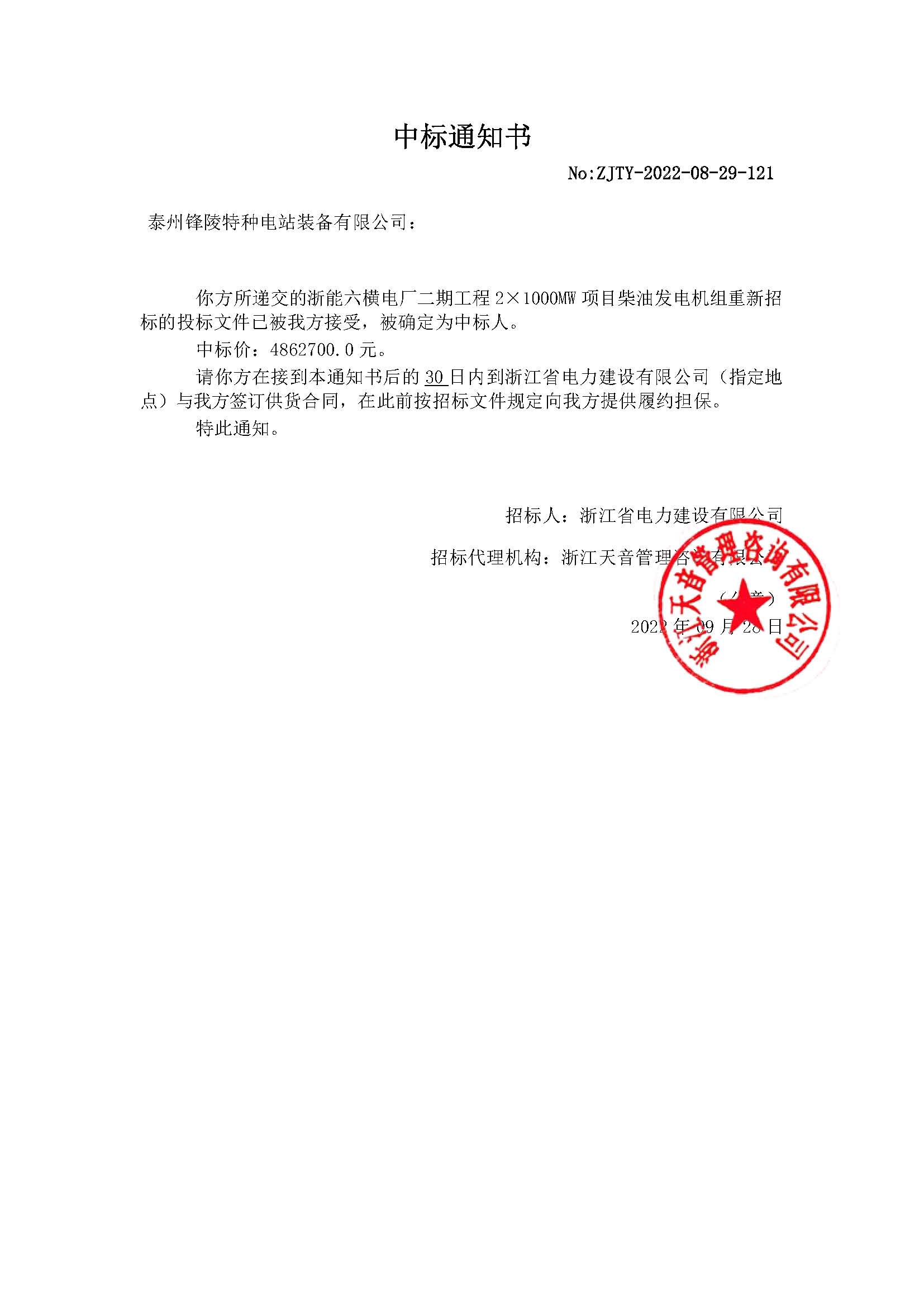 近日,金通靈控股子公司泰州鋒陵特種電站裝備有限公司收到浙江省電力建設(shè)有限公司浙能六橫電廠二期工程2×1000MW項目2...